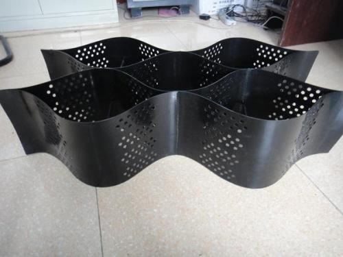 高強(qiáng)土工格室,實(shí)際上是犧牲了一個(gè)次要受力方向上強(qiáng)度及其一些特性,加強(qiáng)了主要受力方向上強(qiáng)度。比較普通土工格室,其用料可節(jié)省許多