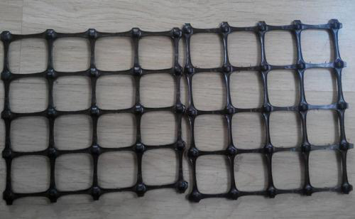 塑料土工格柵是經過拉伸形成的具有方形或矩形的聚合物網材,是在經擠壓制出的聚合物板材(原料多為聚丙烯或高密度聚乙烯)上沖孔,然后在加熱條件下施行定向拉伸