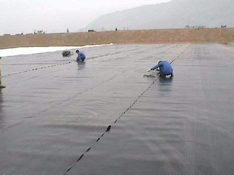 復合土工膜施工事項編輯 (1)使用須采用埋入式:覆蓋厚度不宜小于30cm。 (2)整修防滲系統應有:墊層、防滲層、過渡層、保護層組成。 (3)土體要堅實,避免不均勻沉陷,裂紋,防滲范圍內的草皮、樹根要清除。與膜接觸面鋪設粒徑小的沙土或粘土作防護層。 (4)鋪設時土工膜不要拉得太緊,兩端埋入土體部分成波紋狀較好,特別是與剛性材料錨固時,應留有一定的伸縮量。 (5)施工時,應避免石塊,重物直接砸在土工膜上、最好邊施工、邊鋪設膜、邊覆蓋保護層。
